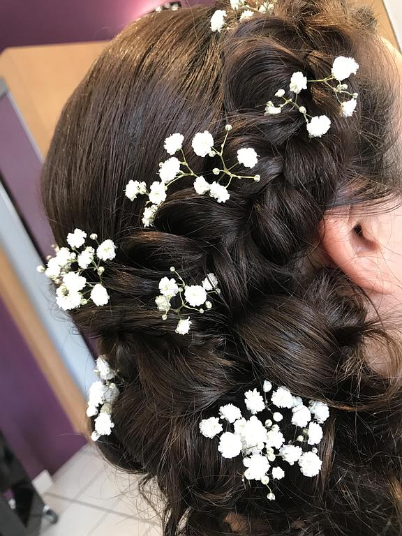 Afin d'être la plus belle pour le plus beau jour de votre vie, nous vous proposons le forfait mariage qui comprend un soin du cheveu et une coiffure de mariée parfaitement assortie à votre robe et au thème de votre mariage. Besoin de changer de coupe ? Contactez-nous, notre équipe de coiffeuses coloristes expérimentées vous propose des prestations au choix .